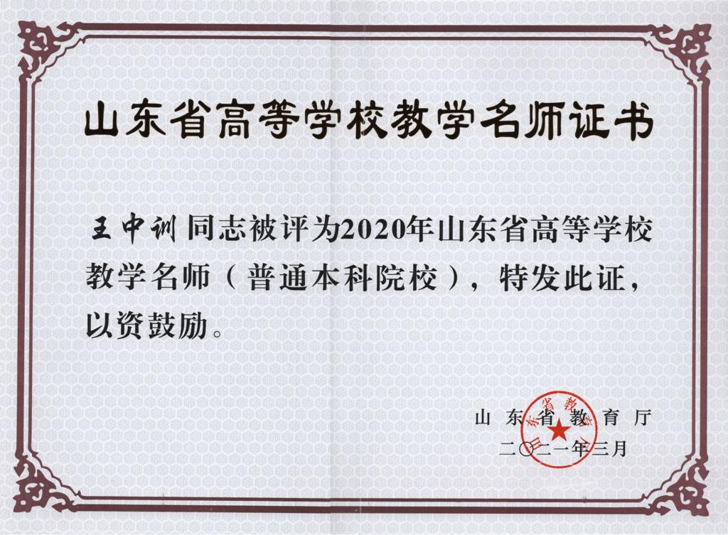 学院教师荣获山东省教学名师