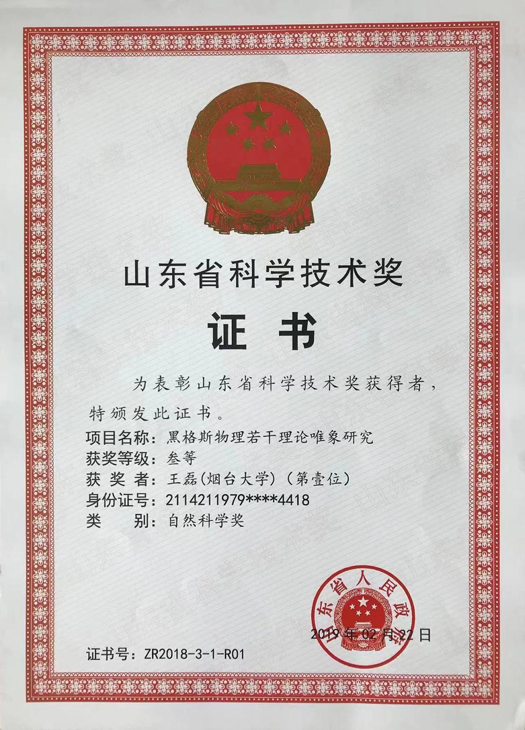 学院教师荣获山东省科学技术三等奖