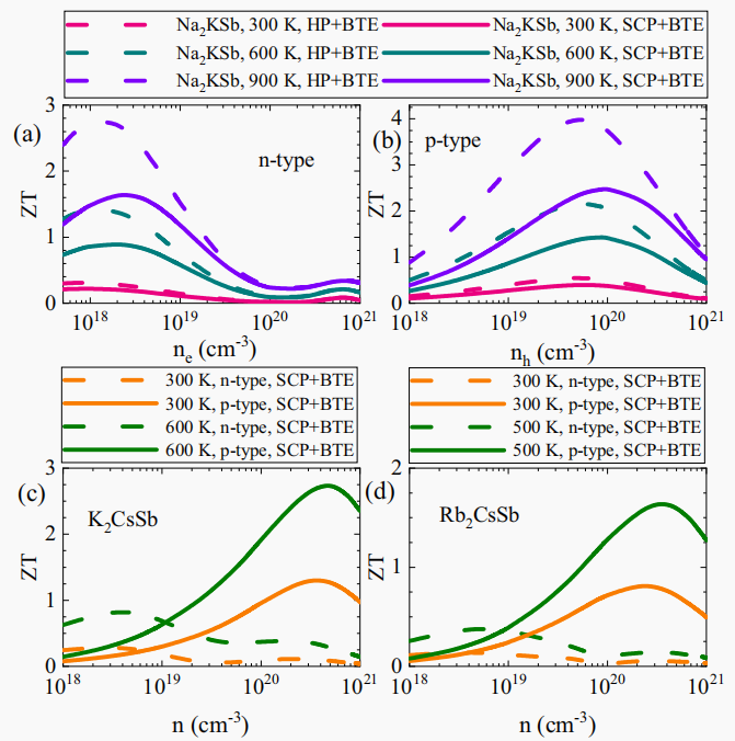 图:计算的Na2KSb和X2CsSb (X=K,Rb)的热电品质因数