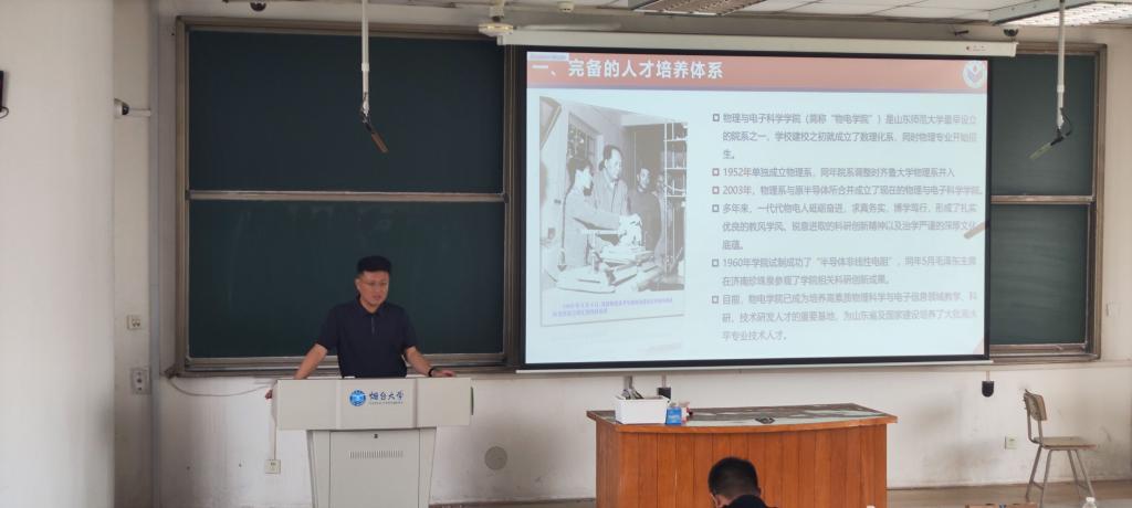 梁春豪教授则重点介绍了光学工程、光电信息工程两个专业的情况。他从专业概况、研究方向、平台建设、科研条件、研究成果及学习环境等方面进行了系统讲解,向同学们展示了学院优越的学习氛围和优良的育人环境。